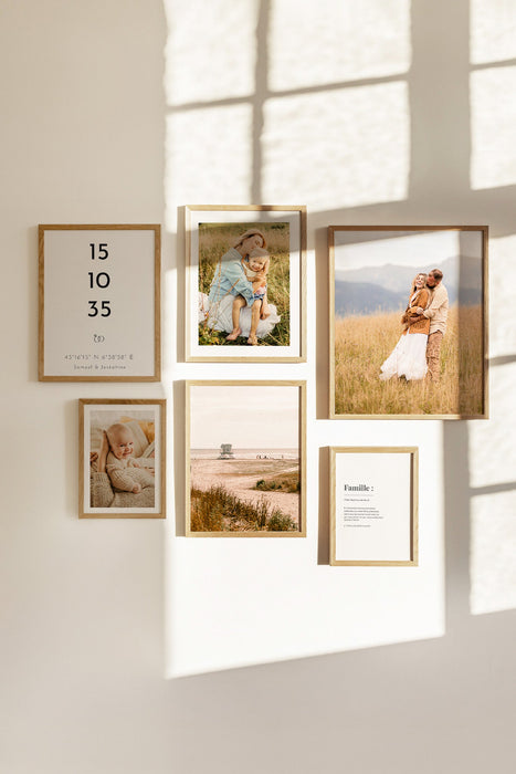 10 formats au choix Nombreux choix de mise en page multi photos Papier brillant 250g/m² ou mat 300 g/m² Cadre en bois ou Porte-affiche en option